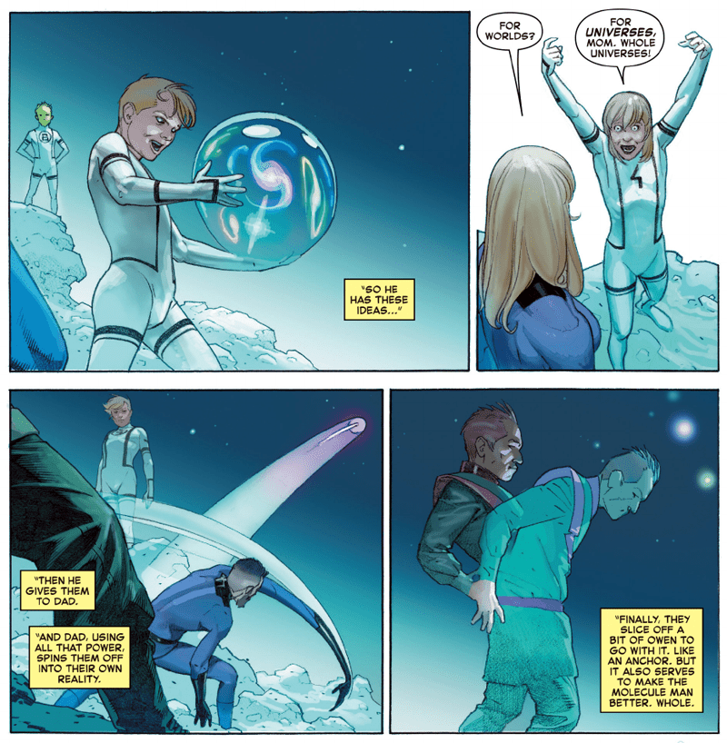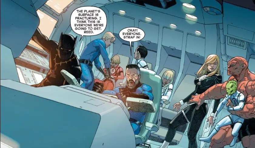While there is plenty of praise to go around, there are some bizarre choices that end up hurting the book in the long run. For one, sometimes the dialogue can be superb, and then occasionally become too exposition heavy, or outright mundane. An example of this awkwardness comes from Valeria Richards constantly referring to Doom as “daddy”. Minor sure, but it can drag you out of the more dramatic moments when you hear an almost 16 year old teenager constantly refer to Doom as daddy. The middle issues in this series, specifically 4 through 7 are the weakest throughout the book. With some of the more important heroes getting limited time in the spotlight, for more exposition heavy panels of energy detecting machines and family drama. It’s not like it completely destroys the momentum that came before, but it definitely doesn’t capitalize on what made the beginning issues so stellar.