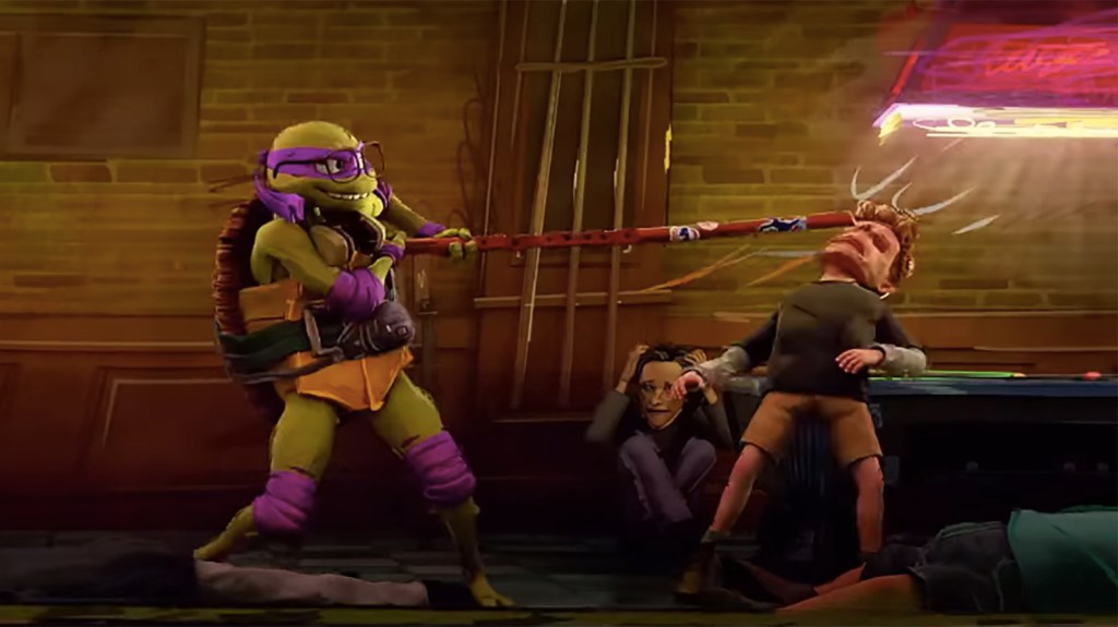 To do justice to these characters, the story must align with their personalities and delve into the individual desires and needs of each turtle. “Mutant Mayhem” takes this challenge to heart. For instance, it introduces a refreshing twist to the familiar dynamic within the group. The leader, Leo, adheres to their father’s rules, preferring to remain in the shadows and avoid involvement with the human world above. On the other hand, Mikey, Raph, and Donny eagerly seek interaction with the world beyond their underground lair. What sets this portrayal apart is a moment where Leo finds himself compelled to report on his brothers’ escapades in the streets above. This unexpected turn injects both humor and depth into a well-worn tradition within these characters’ mythology, while underscoring their teenage personalities. After all, they are teenagers, and “Mutant Mayhem” doesn’t let us forget it.